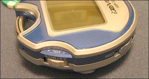 iGP-100的按键设置比起以往机型来说有所改变了,以前的180、380到iHP100都会在正面板上设置一个多方位的导航拨杆,这次不仅没有出现,并且所有的按键都被安排到了机身的侧面。不过从实际操作来看这样设计也恰到好处的,使用过体育专用秒表的消费者应该都有印象,圆形的秒表按键都是在机身侧面顶部两侧,这样就能完全单手操作了。