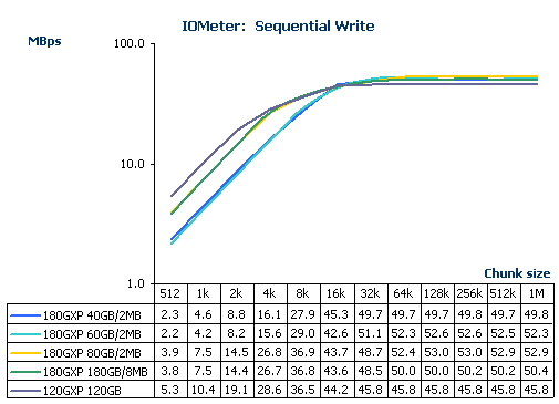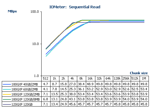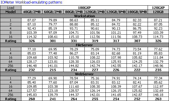 从表现来看120GXP表现最为出色,看来即使老版本的firmware,其效率依旧相当出色。