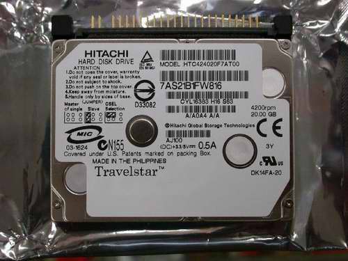 目前多数笔记本都在使用2.5英寸硬盘,而最近日立的1.8英寸硬盘也开始正式销售了。这款产品型号为HTC424020F7AT00,容量为20G,单碟双磁头设计,硬盘转速为4200转,支持ATA100,缓存容量2M,平均寻道时间为15毫秒,与2.5英寸硬盘同样采用44针接口。 该磁盘外形尺寸为长70毫米,宽60毫米,厚7毫米。看起来只有2.5英寸硬盘的一半大小。如果能在国内上市,恐怕很多用户又有更小巧的移动硬盘用了。目前该产品售价为14953日元(约合人民币1200元)。