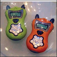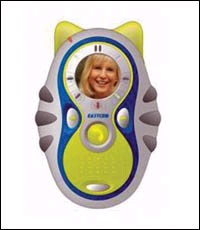 这部由 Panasonic 设计的手机,看似是一件玩具。手机两侧伸起两只角,近看更会见到有猫须图案!另外,键盘设计也简化了,只有5个数字键,因为是给儿童使用的吗,设计当然要特别生动趣致的。