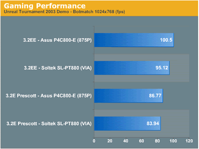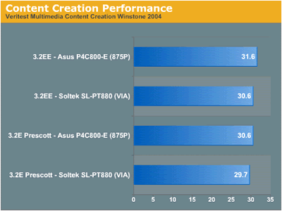 最近国外对于这款主板的性能测试曝光,该主板在多数情况下性能与采用Intel 875P芯片组的华硕P4C800-E主板性能接近,看样子硕泰克这款主板性价比还不错。
