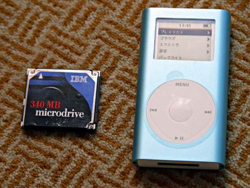 不过相对于iPod的40/20/15GB大容量而言,iPod mini的4GB容量就显得较小了,可以说这是为了小巧化设计而做出的妥协,譬如说以AAC编码、128kbps码率制作的长度为4分钟的歌曲为标准,40GB的iPod可以储存大约1万首,而iPod mini则只能够储存1千首。