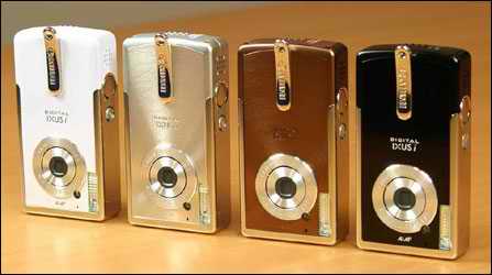 佳能公司的这款400万像素数码相机只有名片大小,并且提供了银白色,乳白色,古铜色,黑色四种颜色备选,恰似一件美轮美奂的艺术品,成为了万千美眉心驰神往的“电子玩具”。