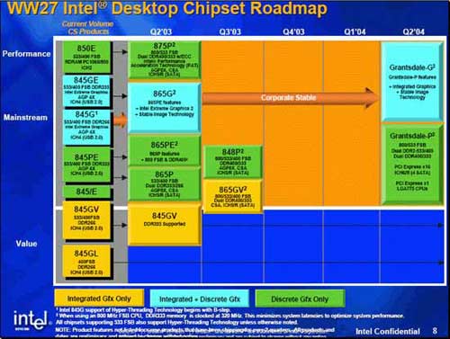 威盛将在第一季度推出PT890芯片组,支持Pentium4 Prescott处理器,支持800MHz FSB,支持双信道DDR400以及双信道DDR2 667内存,同时支持AGP8X和PCI Express 16x。另外,威盛PT890芯片组还支持PCI Express 4x,让PT890芯片组支持到高速网络存储设备。预计PT890主机板将在2004年3月上市。