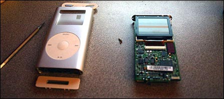 而iPOD Mini则不同,面板可以和机体分离,用户可以自行更换电池。不知道是不是也为JS们提供了一点空间呢?