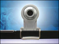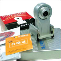 此外,在这个价位上,还有一款就是天敏迷你眼摄像头可供选择。这款摄像头非常小巧,只有2把钥匙的大小,精致的金属盒子包装让人一看就被吸引住了,银白色外壳,底座可以翻转,底座上带一个笔记本的“易接夹”,可以轻松地夹在笔记本和台式机的LCD上面,接触部位还设置有防滑橡胶,可以防止摄像头从笔记本上滑落。硬件采用35万的CMOS感光芯片,最大硬件分辨率为640×480,支持USB1.1和USB2.0速度流畅。附件里除了驱动光盘,还有录像软件,自带实时压缩引擎,可把摄像头的动态影像实时录制成VCD格式。无论从外观还是从拍摄效果来说,这款摄像头都是非常不错的一款,刚刚上市,相信价格应该是让人容易接受的