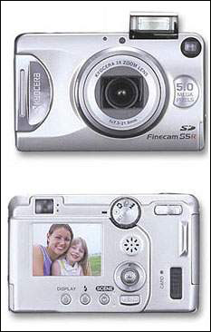 Finecam S5R配备了500万有效像素CCD,使用了3X变焦光学镜头,光圈范围焦距范围等效于传统相机的35 - 105 mm。