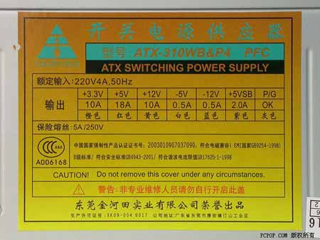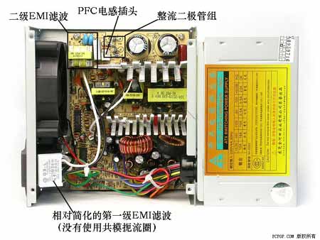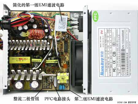 金河田ATX310WB&P4电源使用“简化型的两级EMI电路+PFC电路”的方案