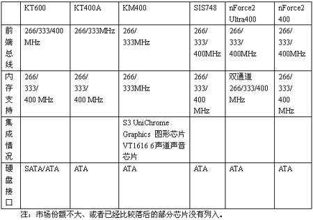 目前,市面上所出售的AMD平台主板,采用的芯片组基本上都是VIA、NVIDIA和SiS三家厂商的产品。