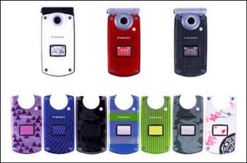 P900i吸引人的地方之一是它的多彩可换面板,随机器一同出售的一共有10种,真是绚丽多彩,价格也便宜,800日圆一个,折合人民币60元左右。它的外型设计还是采用的传统的折叠翻盖式设计,两个折式的手机。手机上的摄像机有效象素数量为128万,采用CCD技术,尺寸是宽50×厚24×高104 mm(折叠起来,重量大约124g)。