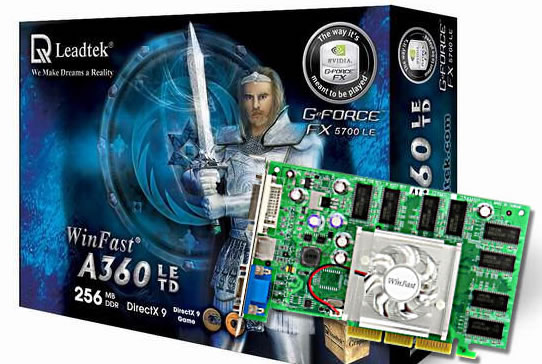 由于其核心采用0.13微米加上SOI技术,相信有一定程度的超频空间,其效能约比Geforce FX 5500高15%-35%不等,看来Geforce FX 5700LE有力成为中低阶的显示卡皇者,图为Winfast的Geforce FX 5700LE,型号为A360LE。