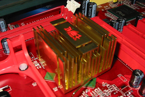 为了适应CPU越来越高的频率,刀锋战士采用了纯铜散热片,使主板的散热性更好,保证了整机工作的稳定性。从图片上可以看出,这款刀锋战士的用料相当考究,这也是主板稳定工作的基础。