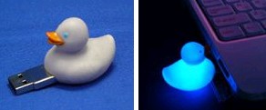 这款U盘的特别之处在于:当MM把这个U盘插到笔记本上进行数据读写时,鸭子的通身就会发出蓝色的光芒。而且由于鸭身的四周运用了荧光涂料,因此在暗处时也会发出幽幽的光亮。从图片上我们就可以感受到鸭子可爱的外型,可爱精致的让人心动。