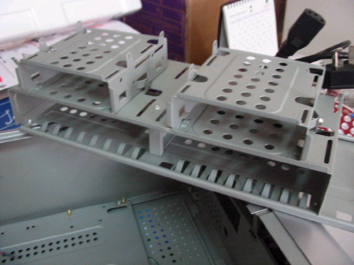 谈到小机箱,很多朋友对它的安装都感到头疼,为了使用户更方便的安装,美基301A采用了支架式设计,更方便DIY爱好者的使用。从上面的图片上可以看出,这款产品可安装2个光驱,并提供了4个3.5英寸支架,提供了更大的扩展空间。