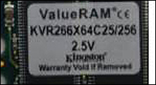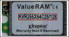 最后笔者还要提醒大家一点,Kingston内存条标签上的内存编号实际代表了此款内存的规格和参数等等信息,如编号KVR266X64C25/128的含义就是Kingstong Value Ram系列的DDR266不带ECC,Cas值2.5的128M内存。假的Kingston内存往往编号和实际参数不符,同时内存包装盒内都有中文说明书,而假货一般都不提供说明书。