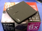 该款超薄TDK外置刻录机拥有8速刻录、8速复写以及24速CD-ROM读取功能。数据传输方面,则采用了USB2.0接口。这款产品目前市场售价为799元,虽然8倍速的速度比较一般,不过其体积表现在同价位产品当中却极有优势,基本是千元以内价位当中,体积表现最具实力的产品了。因此对这方面要求较高的用户不妨考虑这款产品。