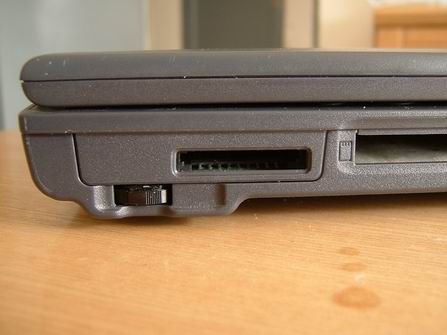 笔者惊喜的发现:这款机器将所有接口都集中设计在左侧、前端,这样的设计是一个意料之外的设计。而最为特别的是右侧并没有任何一个接口的存在,散热出口反之取代之位置。T810D的风扇出口都集中在右侧,这样就构成了CPU所散发出的热量和硬盘的热量集中于右端散发出来,这样右侧热度明显会高于左侧,机器在使用一定的时间后键盘和掌托部分偏热现象便由衷的显现出来,而是用外接鼠标时,右侧风口也会发出令人不舒服的热风。可能是采用P-M 1.4GHz处理器的缘故,考虑到热量的缘故,厂商将风扇设计的对热量十分敏感,略微的热量就会使风扇急速的转动起来,并且频繁的噪声分贝数完全可以和P4处理器的机型相媲美,希望厂商在考虑使用舒适程度的前提之下改进这个可大可小的问题,毕竟消费者愿意购买的是一款在使用舒适程度上近乎完美满意的产品。