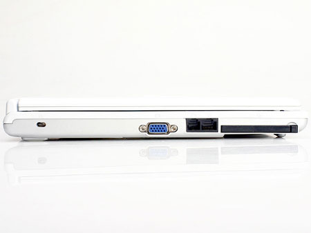 在接口的配备上,M210并不是很丰富,在左面,从上图可以看到,只有VAG输出、RJ11/RJ45、PCMCIA四个接口,诸如1394、S端子这样的接口都没有,这也使得其左侧尤其简单,不过,在空间允许的情况下而没有配备更丰富及实用的接口,是一大不足,更何况M210面对的是还是年青的消费者,像1394这样视频设备经常要用的接口,用户只有通过购买PCMCIA扩展卡来解决。