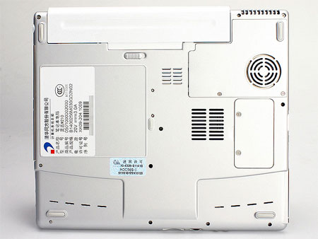 底壳设计显示出简洁利索的风格,可能是受镁铝合金材质的可塑性不如工程塑料的制约。扩展性方面,在主板的底面只预留一条内存插槽,可是拆开位于右边中间位置的内存盖板却发现插槽里面已经用上了一条256M的内存,也就是主板上也没有集成内存芯片。在清华同方的官方资料也没有查证到是否在键盘下面还有内存插槽,如果没有的话,用户要进行升级所要的费用支出相对就要多些,同时这样来减少组件达到成本控制的目的,实在有些不应该。另外,硬盘与miniPCI没有提供用户升级的盖板,这样的话,用户要进行升级的话还必须要得到清华同方方面的技术支持才能完成。