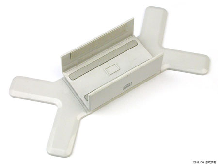 机身附带的支架表明CRW-5224A-U支持直立放置使用,对于桌面空间紧张的用户来说这无疑是个好消息。将支架两侧外缘的短线和机身侧面的黑色小三角对齐后插入,支架底部的方块凸起就能和机身侧面的凹陷很好地吻合,此时支架内表面的橡胶垫可以有效地发挥防滑减震作用??在直立放置使用时,CRW-5224A-U的震动和噪音都有明显增加,性能表现则基本不受影响。