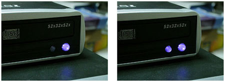 图为:别出心裁的指示灯(左为仓内有盘时、右为提速到52×后)