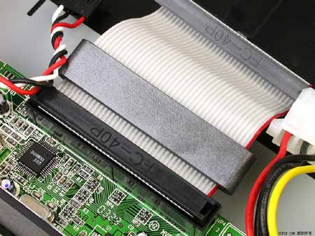 拆机的过程和看到的结果更加深了我们对这款CRE52-M的好感。由于采用了内六花螺丝,因此拆解工作略费了一番周折。CRE52-M的外壳由银灰色前框和两片黑色的盖板组成,用了4个螺丝固定,盖板接合紧密,感觉模具相当精细。拆开外壳,我们看到的是彩色印刷的铭牌和屏蔽良好的转换模块。进一步拆解之后我们可以看到,CRE52-M的转换模块做工相当精细,桥接芯片采用了GenesysLogic(创惟)的GL811E。IDE数据线上的屏蔽磁环引起了我们的注意,因为这种设计在参测的产品中绝无仅有。仔细观察我们还发现,不仅是IDE数据线,包括后部的USB 2.0接口、音频接口和电源接口也都进行了防EMI的设计??微星的良苦用心和对品质的苛求给我们留下了深刻的印象。