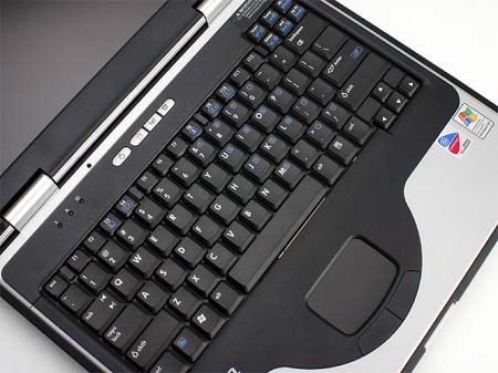 因为硬盘与电池都是从侧面抽取,因此在底部没有小盖板或是电池仓,唯一的一个小盖板是miniPCI插槽,以便于用户要自行升级几合一的miniPCI扩展卡,在具备无线网卡的基础上,再扩展诸如蓝牙之类的功能。硬盘如果要升级的话,可以打开左侧面硬盘仓的门盖,抽出硬盘即可进行升级。而内存因置于键盘下面,所以看底部中央有两个银色的镙丝旁边标有键盘,拧下这两个镙丝即可以把键盘拿下来,很方便就可以扩展内存。在底部的后端还有一个端口复制器,在本身已具备相当丰富的接口的情况下,还可以进行端口的扩展,以解决在数量上的不足,真是为用户考虑得相当周到。在散热方面,因为V1007AP有着宽大的机身,想必在机体的内部,有足够的空间做一个非常棒的散热系统。CPU的散热采用的还是这类机型里面普遍采用的风冷系统,在底部的右侧位置有一个抽风窗格,可以很清楚地看到内部的风扇,由底部抽风,从后侧的窗格送出CPU产生的热量。而在机体内主板上的其它的芯片的散热,则主要采用金属导热的方式,把热量进行扩散,然后自然散发出机体外。以保证机体内部一个衡温的环境。最后来看看键盘部分: