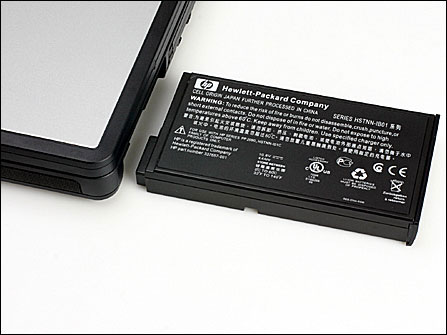 在底部,滑动锁定电池仓按钮后就可以把电池抽取出来,从上图可以看到这是打上HP自己的LOGO的一块电池,容量为4400毫安。其提供给本子持续使用的时间,我们待会儿可以看看测试的结果。