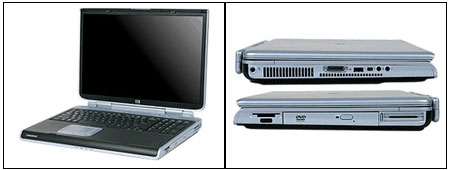惠普不但为这台Pavilion zd7000设计了漂亮的外观,还给了它坚强的“芯”。在笔记本的四周,可以看到四个USB 2.0接口;一个四针的火线接口;视频输出端子;两个数码卡读写插槽(支持SD卡,MMC卡,SONY的Memory Stick记忆捧,还有SM卡);另外还有一个Type II/Type III PC Card插槽。一个固定的DVD-R/RW驱动器可以满足大多数光盘的需要,但是很遗憾,这台笔记本并没有提供一个备用电池。笔记本的芯是令人惊讶的奔腾4桌面型处理器,(它的发热量实在是太大了,不过幸好这台笔记本够“分量”,用户应该不会把它放在膝盖上长时间使用吧)。这台机子还配有128MB独立显存的Nvidia GeForce FX Go5600显卡,更有高达80GB的大硬盘,两条内存插槽上各插一条512MB的400MHz的内存。