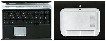 这台Pavilion zd7000虽然体积巨大,但这样却能提供整洁和宽松的使用空间,使手部能在上面舒适地使用。通过那个长长的突起的上盖锁,可以很容易地打开笔记本的上盖。这时进入眼帘的是一个全尺寸的大键盘??甚至连后退键(Backspace)也很大,上面还有独立的数字键盘。键盘手感良好,十分安静,按下按键时也不会产生摇动或下陷的现象。宽阔的触摸板右边带有一个十分有特色的滚动条,触摸板的下方是常见的鼠标左键和右键按钮。立体声扬声器几乎占了笔记本的整个前部边缘,它发出的声音足可以和小型的外置音箱比美。主机身前部还带有一个802.11g Wi-Fi无线上网的开关。