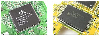 电视卡/盒主要有几个部分组成:高频头(Tuner)、解码芯片(Decoder)、PCB板和其他相关芯片。所谓其他芯片一般是用来实现某些特殊功能的,比如Remote遥控芯片来实现遥控器功能、USB电视盒上的USB控制芯片实现即插即用等。而在VGA电视盒上还需要一个视频处理器芯片和音频处理器芯片来实现最终的视频以及音频输出。由于普及性和成本方面的考虑,目前还没有出现支持DVI输出的电视盒产品。