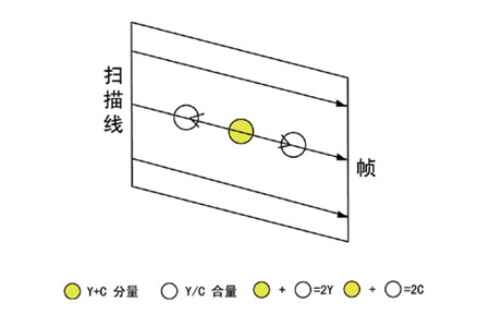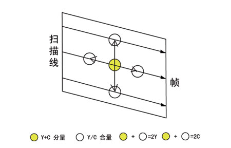 我们假设相邻两行的视频信号保持相关性以及延迟线无损耗,那么输入的信号经延迟线延迟两行后,Y信号保持不变,而色副载波的相位则与原信号相反,所以变成Y-C,在加法器输出信号为:(Y+C)+(Y-C)=2Y;在减法器输出的信号为(Y+C)-(Y-C)=2Y。从而达到色亮分离的目的。