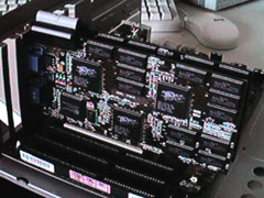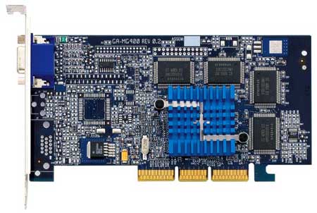 Matrox一向是不允许别的公司生产自己的显卡的,但是这条惯例却在技嘉身上被打破。当年技嘉拿到G400的生产权之后推出的一款最为奇特的产品就是现在被好多人收藏的这块G400。密密麻麻的低通电路让人们与之初次见面时颇有好感,而没有BIOS的设计更是让我们大为惊奇。我们知道开机后显示的第一条信息就是显卡BIOS中的信息,但是这款显卡却将BIOS信息悉数转移至主板之上,这样这块G400也就只能在技嘉的主板上使用了。