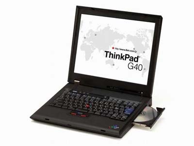 发售的 G40其中配置最高的2388- EQJ采用了显示分辨率可达到1400×1050(SXGA+)的15英寸TFT LCD显示屏。配备桌面型的Pnetium 4 3.0GHz处理器,512MB内存(最大扩展至1GB)和60GB(4200rpm)硬盘。机器采用了集成图形核心的852GM芯片组,内置具备DVD/CD-RW功能的COMBO驱动器。另外产品还装载了符合802.11b规范的无线网络模块。外部接口方面,产品具备4组USB2.0端口,1组TypeII PCMCIA插槽以及调制解调器和网络接口。而除了最高端的2388- EQJ采用了锂离子电池以外,其他的均采用镍氢电池,电池的巡航时间大约在2小时左右。ThinkPad G40的外观尺寸在329×283×37-51 mm( 宽度×纵深×高度 ),重量大约在 3.9 kg左右。G系列是灵活的台式机备选方案,价格低廉体积相对变大,同时既适应桌边使用又可以移动办公,台式机替代机型,针对不同的市场定位而言,这也是不错的选择。