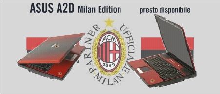 ASUS推出的这款AC米兰版的A2D,采用AMD Athlon XP-M 3000+处理器,512MB DDR内存,60GB硬盘,15?XGA(1024×768) TFT-LCD屏幕,ATI MOBILITY RADEON 9600 PRO(64MB独立显存)显卡,DVD-RW刻录机, 802.11g(速度最高可达54Mbps)无线网卡,接口方面也比较丰富,包括USB2.0、1394、PCMCIA等,预装Microsoft Windows XP Home操作系统。典雅的外观加上不俗的配置,相信即使不是AC米兰球迷的朋友也会爱不释手吧。这款Milan本本的标准售价为1599欧元,按这种配置来说不算贵,但可惜的是这款本本目前国内还没有发售,看来国内的AC球迷要耐心等等了。