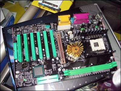 盈通雪狐848P是近期刚刚推出的,现在购买还有可能会赠送32M闪盘一个,价值百元,“实际”价值较高。黑色PCB大板设计,北桥848P芯片,800MHz前端,超线程技术,支持Socket 478针脚全系列Pentium4处理器。支持单通道DDR400,最大支持2G。南桥同样采用ICH5芯片,支持2个SATA硬盘和8个USB2.0接口,不支持RAID功能。板载Realtek ALC655 CODEC,支持6声道输出,该主板与七彩虹848P如出一辙。