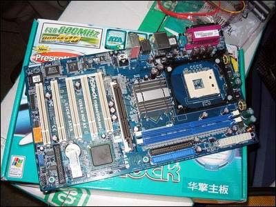 看到这里,如果您觉得对前面两款主板没有集成网络功能而倍感失望的话,那么华擎848P至少可以令您满意,它声网卡全集成,而且价格与前两款主板持平。华擎848P采用蓝色PCB板设计,848P+ICH5南北桥组合方式,支持800MHz前端和超线程技术,单通道DDR400,最高支持2G,提供8个USB2.0接口和2个SATA硬盘接口,不支持RAID功能。通过主板集成的Realtek RTL8101L网络芯片,提供百兆功能,也是此次专题唯一一款集成网卡的主板。板载CMI 9739A CODEC,支持6声道输出。