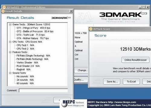 nVIDIA将在美国发布最新的NV40显卡,该显卡采用AGP 8X接口,而国外某硬件网站亦公布了NV40的详细测试成绩。 在该测试成绩中Game Test 4的平均速度达到70.7fps,可见NV40在3D Mark03中的高分很大程度上是通过Game Test 4获得的。另外不知道是不是该网站故意的,测试中比较关键的部分??配置列表被测试成绩挡住了。 另外根据Theinquirer.com网站透露,NV40显卡的功耗超过了100W,所以必须采用2个独立的D型口供电,而且建议使用500W电源。同时该网站透露NV40的售价为399美元(GeForce 6800)和499美元(GeForce 6800 Ultra)。