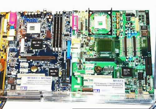 ALi在IDF中展出了两款新的芯片组,其中M1683芯片同时内建AGP 8X和PCI Express x16接口,主板厂商可以根据需要自行选择,此外南桥也可以支持PCI Express x1的M1566芯片。