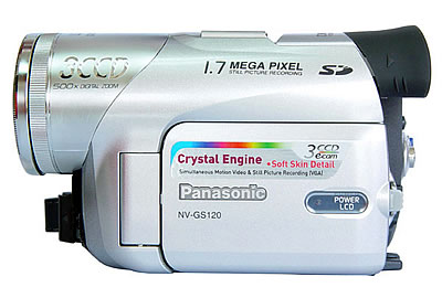 推荐理由:松下NV-GS120是2004年松下推出的一款针对高级用户的3CCD的数码摄像机,用于取代去年发布的3CCD数码摄像机NV-GS70EN。和GS70相比,GS120的更轻一些,它的尺寸为70×126×75毫米,重仅约为450克,显得更小巧玲珑,上手的感觉也更好。它的售价在7000元左右,和GS70也相差不大。GS120采用了1/6英寸、46万像素的3个CCD影像感应器,总像素达到了138万,静态照片的有效像素为120万,与GS70基本相同。和GS70相比,它减少了手动对焦环,总体上来说应该和GS70表现比较相近,而技术应该更加成熟一些。另外GS120依然没有加入光学防抖功能,而且连GS70具有的电子防抖功能也去掉了,实在是有点遗憾,对于初学者来说,想要拍出画面稳定的影片就比较困难了。另外GS70的智能闪光灯和手动对焦环也在GS120上去掉了,因此笔者感觉松下GS120在功能上还不如GS70。GS120目前的价格在7000元左右。