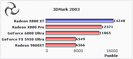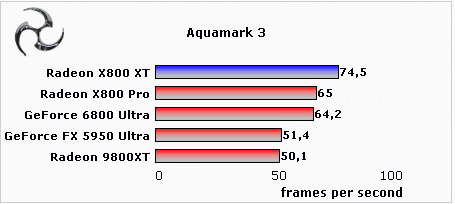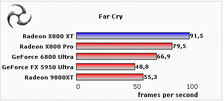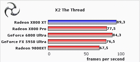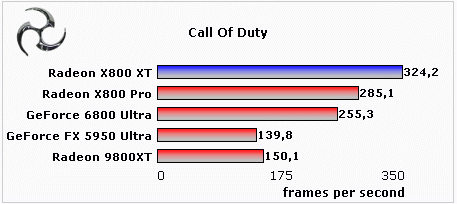 上面的测试成绩显示,Radeon X800XT全面战胜了GeForce6800Ultra,就连X800Pro在多项测试中也领先于GeForce 6800Ultra。