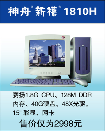 其实神舟历史上推出的低价经典机型完全不止新禧1810H这一款,只不过这款机器却是品牌机历史上价格最低的,这张低价牌打出,令组装机市场也望而生畏。