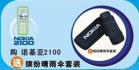 1、从即日起至5月20号,凡购买诺基亚2100的用户, 可获赠缤纷晴雨伞套装。