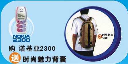 2、从即日起至5月20号,凡购买诺基亚2300的用户, 可获赠时尚魅力背囊。