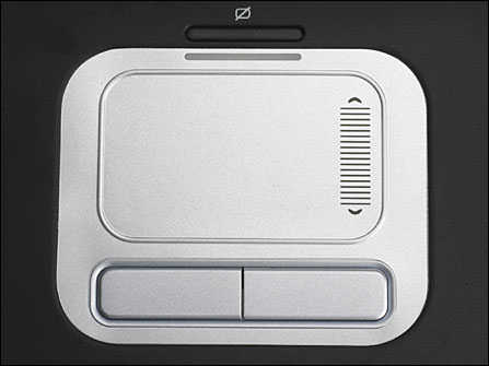 ZT3000的TouchPAD外形较大,触摸板与边框整合成一体,通过一条宽约1mm的凸起线条以示触摸板的可用范围。从图中可以看得很清楚了,左右按按键、边框、触摸板都完全统一在一个面上。在触摸板的右边侧,把上下滚动操作非常形象地做成一个滚动条框,在这个范围内上下移动,在Windows程序里面也相应上下滚动的功能。比上下滚动按键方便了很多。另外,在TouchPAD的前面,可以看见比以往的TouchPAD多了一个条形按钮,在TouchPAD边框的相应位置也有一个条形的状态灯。相信经常使用这灰TouchPAD本子的朋友,经常会碰到在进行文字输入时,因为手掌会碰到TouchPAD,从而移动光标所在位置,造成定位错误,是一件相当烦的事情。而有了这个按钮以后,用户可以在进行文字输入时,按下这个按钮,条形状态灯亮,这种状态下,TouchPAD其实就被关闭了,那么不管你如何碰到触摸板,都不会对光标产生任何操作。这一困扰用户很久的设计上的缺陷,终于在ZT3000上得以很好的解决。而在有的本子里面虽然也可以关闭TouchPAD,但采用的是用功能组合键FN来完成,相比ZT3000这种设计来说,就逊色多了。