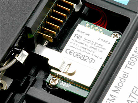 这块就是ZT3000配备的无线蓝牙模块,蓝牙的主芯片是由无线设备研发生产厂家Actiontec公司的产品。因为芯片用金属盒封装来起来,所以不能看到主IC,只能从贴于金属盒上面的标签来识别。