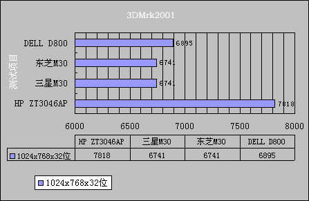 要注意的一点是,三星M30采用的是P4平台,另外,因为各个机型的测试方法的不同,所保留的测试项目都不太一样,所以,对比方面只有MobileMark2002与3Dmark2001两个测试项目的对比。各测试成绩如下: