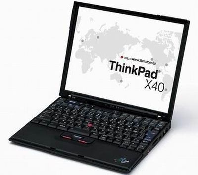 X40依然是12.1英寸机型,超低电压版Pentium M 1GHz处理器,在芯片组上IBM放弃了一贯使用的AIT RADEON显示芯片,改用855GME芯片组集成的显示芯片。X40内建有Modem、VGA、千兆网络和红外端口,一个Type2 PC卡、一个SD卡读卡槽,两个USB2.0端口,与X31相比,X40要轻约400g,只有1.24Kg,外形尺寸为268×211×20.6×26.9mm,比X31要小20%. X40的标配电池使用时间约为3.5小时,可以加钱升级到大容量电池,可以达到7.5小时的使用时间。