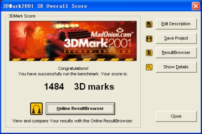 3DMark2001测试的成绩为1484分,采用855GM板载显卡的joybook6000e在3D图形方面虽然不是出类拔萃但是也中规中矩,这样的性能足以流畅地运行如反恐精英这类的的3D游戏和一些图形处理。