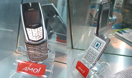 再来看看另两家国内手机厂,夏新AMOI的展示台除了有苹果机F9、F99,还展出了旋转屏幕手机及滑盖机,两款新机的上市时间都未定。首信则有C8028等四、五款手机展出,不过也一样都是摆在陈列柜的模型机。
